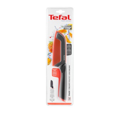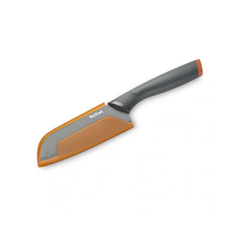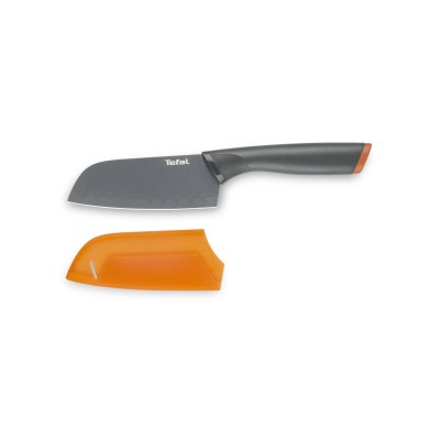 Le couteau Santoku Fresh Kitchen 12 cm de Tefal est l’outil idéal pour trancher, couper et hacher tous types d’aliments. Sa lame en acier inoxydable avec revêtement antiadhésif renforcé au titane facilite la découpe et le nettoyage, tandis que la poignée ergonomique au toucher doux offre confort et contrôle optimal. Un étui de protection assure un rangement sûr et pratique.