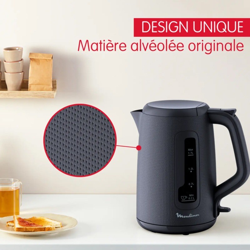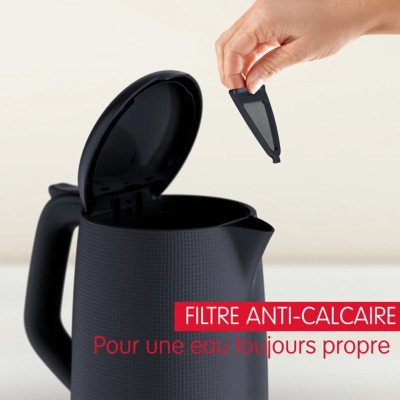 Bouilloire Sans Fil MOULINEX - Puissance: 2400 Watts - Capacité: 1.7 Litre - Base pivotante 360° - Matériau: Plastique - Niveau d'eau visible - Filtre anticalcaire Amovible - Ouverture automatique du couvercle - Bouton Marche/Arrêt - Arrêt automatique - Chauffe rapide - Idéale pour toutes vos envies de boissons chaudes - Un design et un toucher uniques qui apportent de l'élégance à votre cuisine - Couleur: Noir