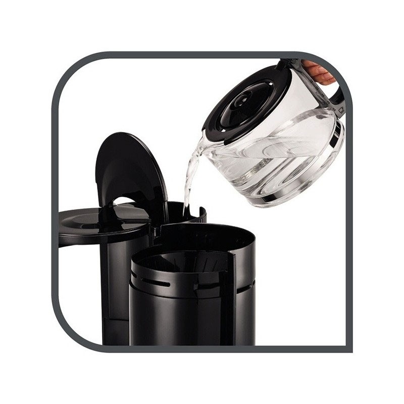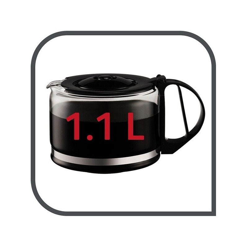 Cafetière MOULINEX UNO - Puissance en Watts: 800Watts - Capacité: 1.1 Litre - Nombre de tasses: 12 Tasses - Mise en veille automatique après 30 minutes - Système anti-goutte - Porte filtre: Pivotant et amovible - Couleur: Noir