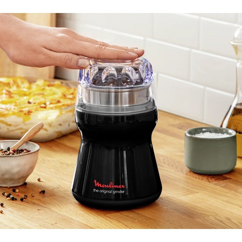 Moulin à Café MOULINEX - Puissance: 180 Watts - Capacité: 50 g - Lame en acier inoxydable - Bol en Acier inoxydable - Facile à utiliser - Un couvercle transparent -Couleur: Noir