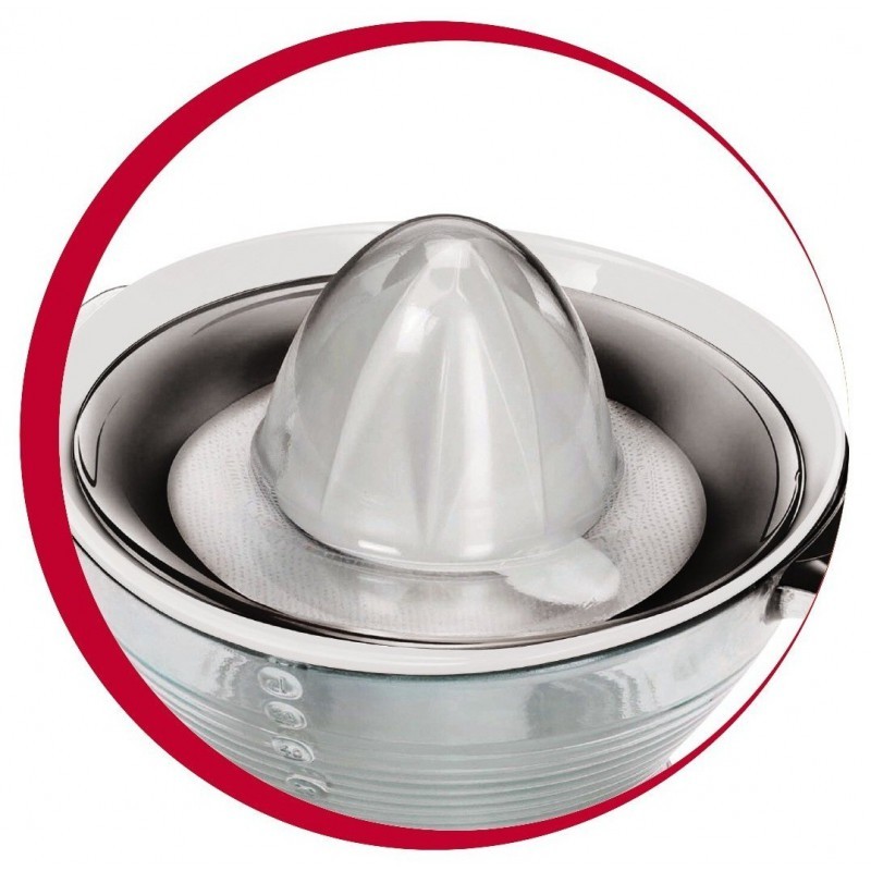 Presse-agrumes Moulinex vitapress - Puissance 25W- Capacité : 1 L - Sélecteur de pulpe : 2 filtres - 1 cône - Double sens de rotation du cône - Rotation alternée - Couvercle de protection