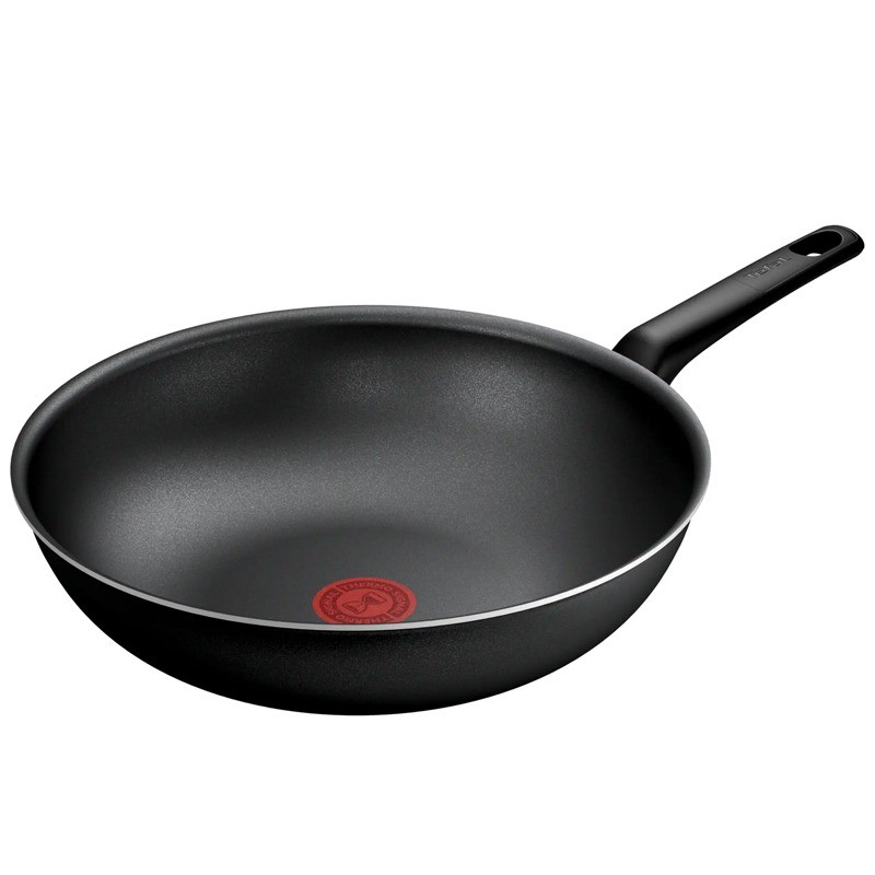Wok TEFAL Access G6 - Diamètre: 28 cm - Matériau: Aluminium - Revêtement anti-adhésif à l'intérieur et à l'extérieur - Durable et léger - Poignée Fixe - Convient à tous les types de feux, convient à l'induction - Couleur: Noir
