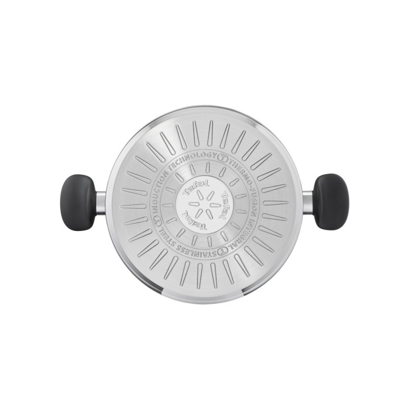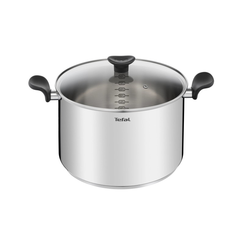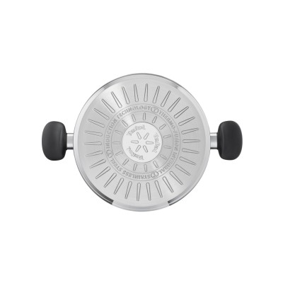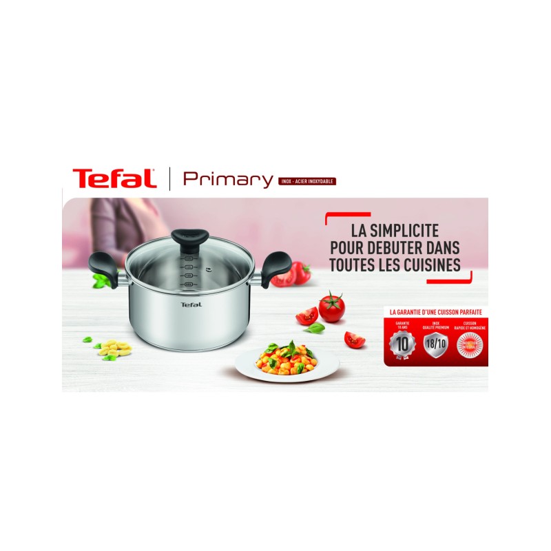 Marmite Tefal Primary 28 cm en acier inoxydable 18/10, robuste et durable, assurant une diffusion homogène de la chaleur. Dotée d’un couvercle en verre avec sortie vapeur, de graduations intérieures et de poignées ergonomiques. Compatible tous feux dont induction et lavable au lave-vaisselle.